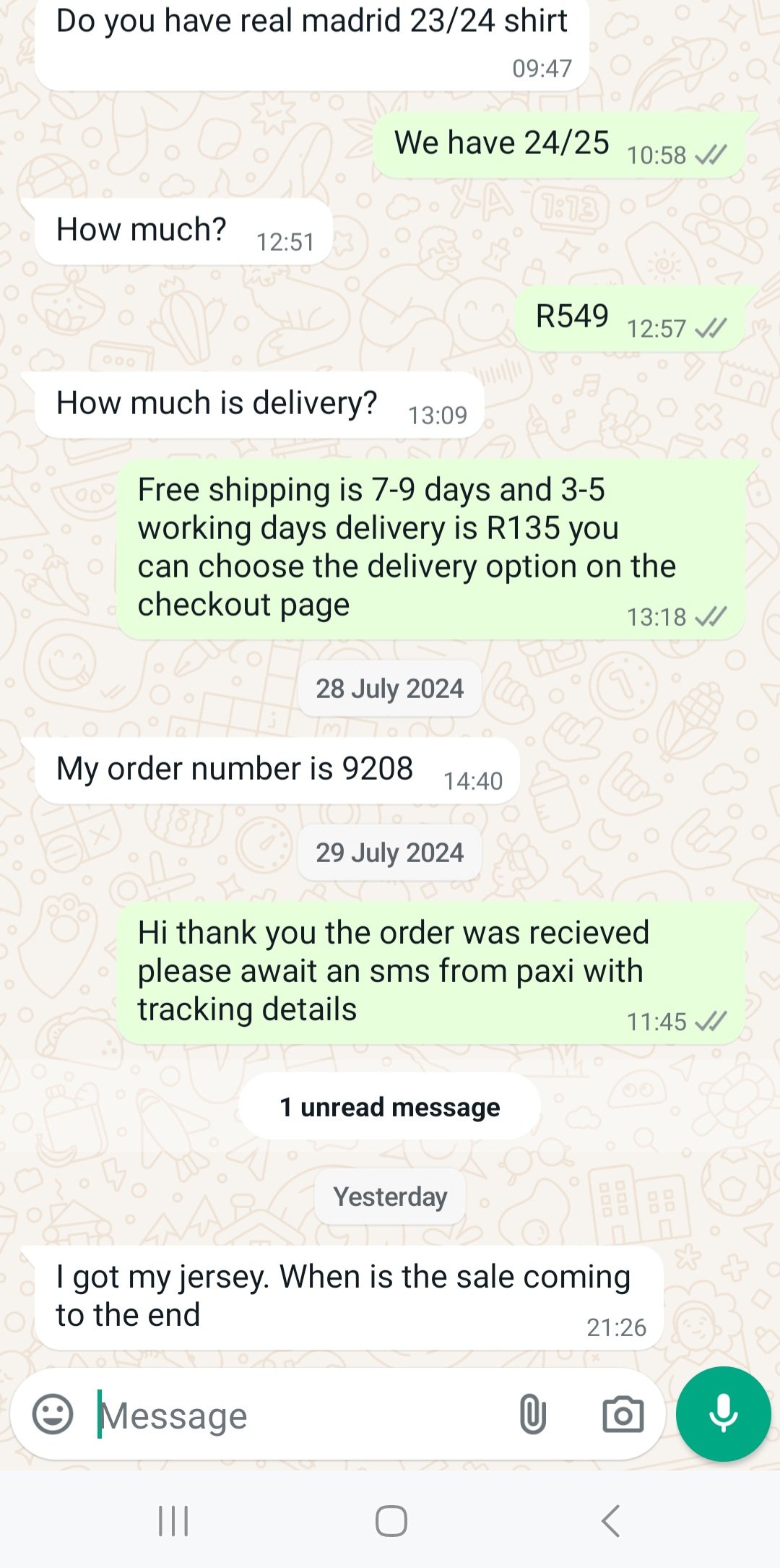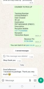 We ship via PAXI with a 7-9 day free shipping option and a 4-5 day shipping option for R135.