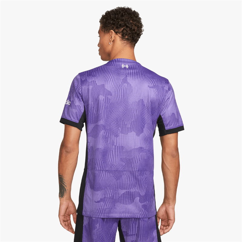 Using natural tones, 100% recycled polyester and a new pattern designed to help reduce material waste, the Liverpool FC 2023/24 Third jersey was created with sustainability in mind. Our Stadium collection pairs replica design details with sweat-wicking technology to give you a game-ready look inspired by the Reds.